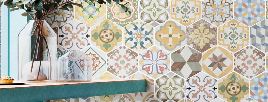 Centauro Tile Inserto Mix 45,5x90. Die großformatige Retro-Fliese oder Fliese Centauro wird Sie mit einem tollen Patchwork-Stil überraschen.