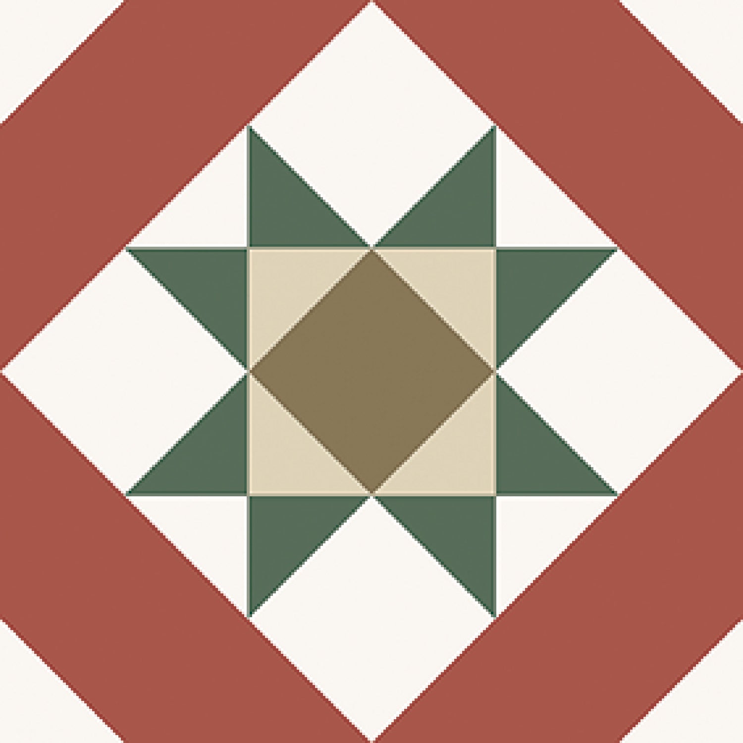 Kompas. Už samotné jméno v sobě nese cestu, orientaci, hledání středu i hranic. Série od Nanda tak nepůsobí jen jako obyčejná dlažba — je to mapa, kterou rozprostíráme po podlaze či stěně, mapa složená z tvarů, linií a barev.