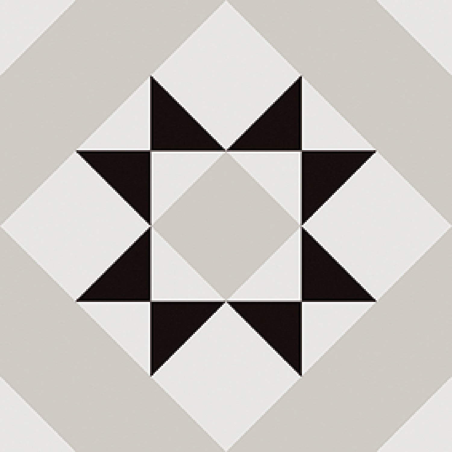 Kompas. Už samotné jméno v sobě nese cestu, orientaci, hledání středu i hranic. Série od Nanda tak nepůsobí jen jako obyčejná dlažba — je to mapa, kterou rozprostíráme po podlaze či stěně, mapa složená z tvarů, linií a barev.