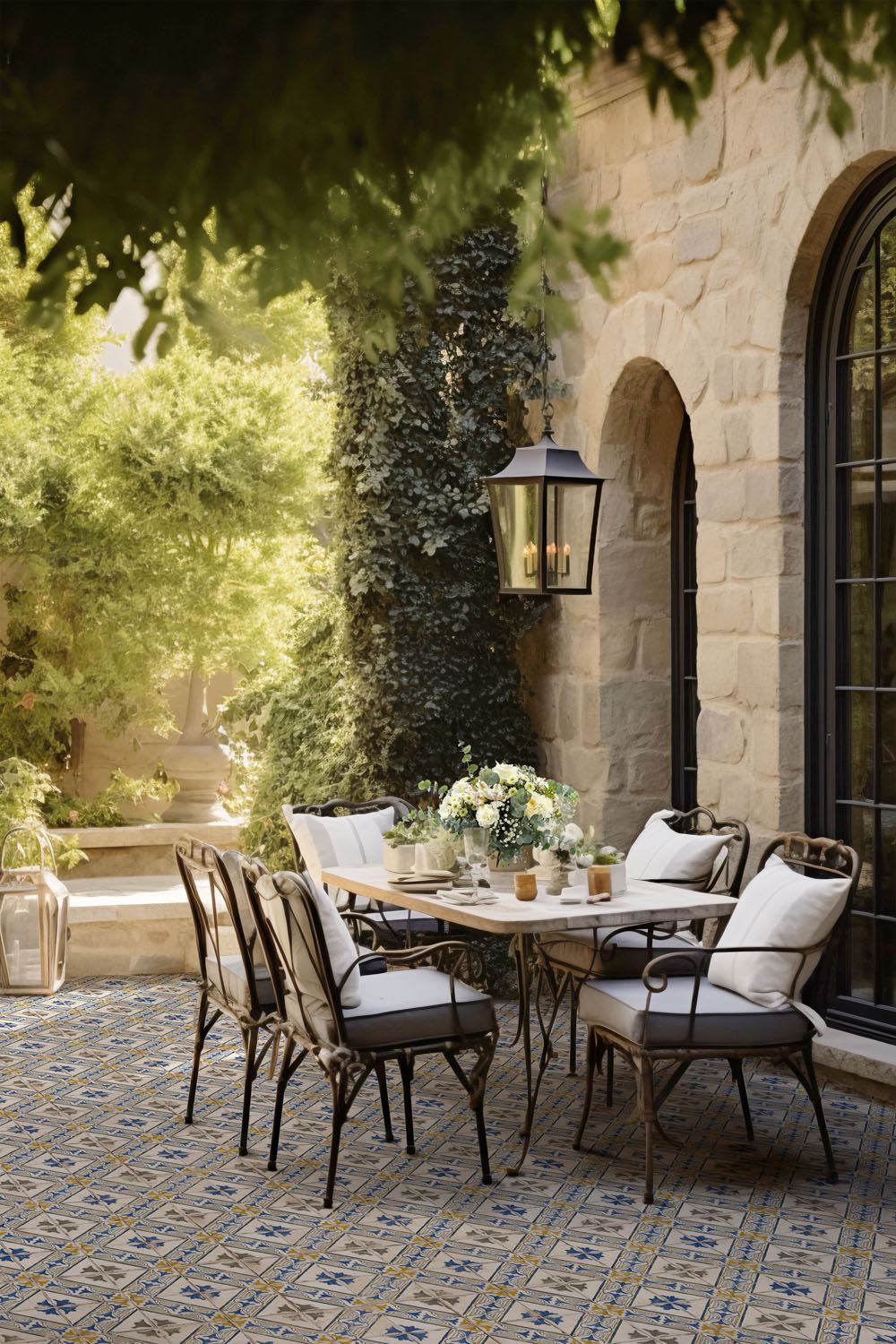 Každý čtverec je jako políčko na cestě. Některé čisté, jednobarevné, jako klidná hladina moře v bezvětří. Jiné nesou geometrické ornamenty, kříže, hvězdy či šipky, jako by ukazovaly sever, jih, západ a východ. Dohromady vytvářejí rytmus, který vede pohled stejně pevně jako kroky cestovatele po kamenné cestě.