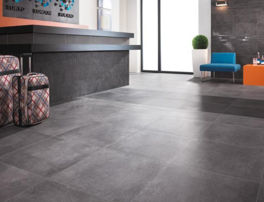 Pflaster Tassero Graphit Rect. 59,7x119,7 . Dank ihres klaren Industriedesigns und vier Farbtönen passen sich die rektifizierten Fliesen von Tassero nahezu jedem Raum an. Wir liefern auch als Treppenstufen und Sockel.